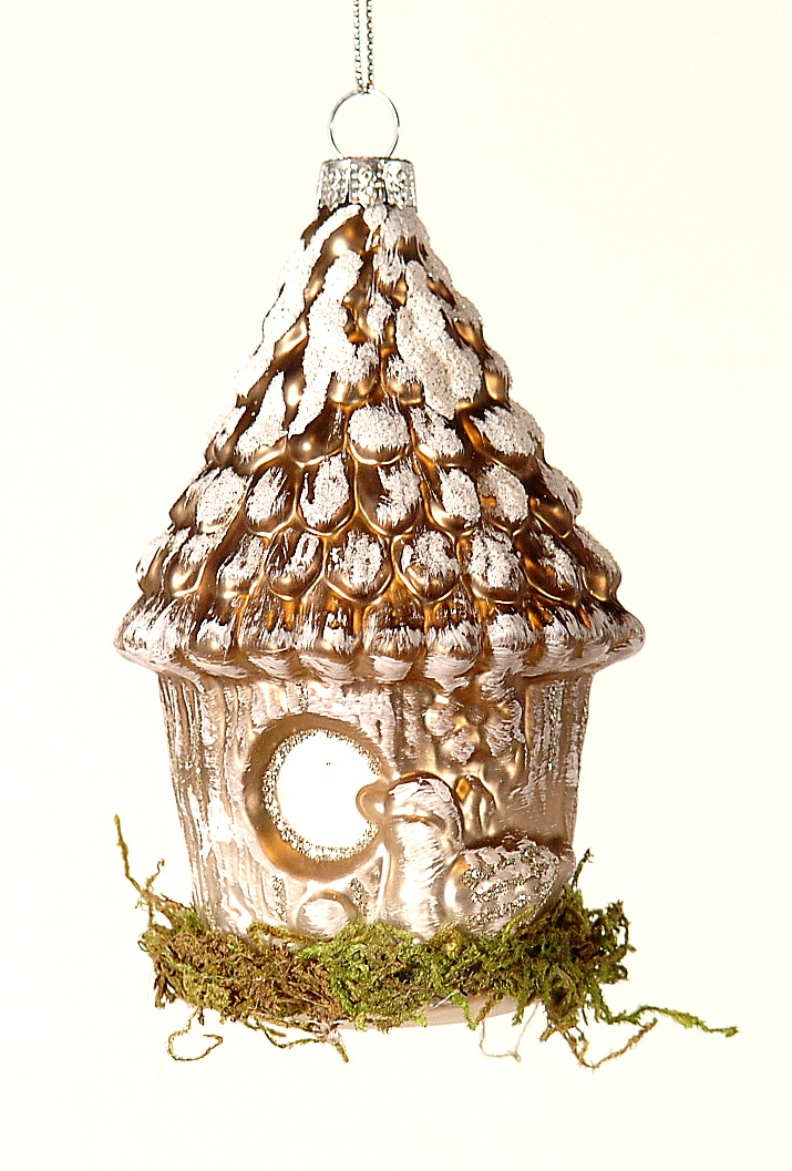 Эта очаровательная стеклянная игрушка станет прекрасным украшением вашей новогодней ёлки! Изящный домик для птиц выполнен вручную из прозрачного стекла и украшен изящной росписью, создающей атмосферу тепла и домашнего уюта.