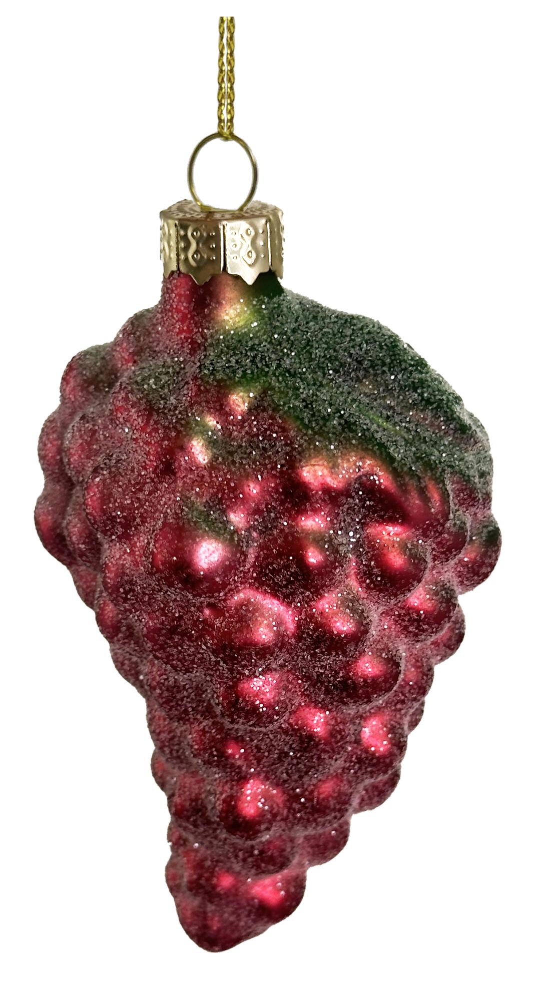 Гроздь винограда, изображенная на игрушке, добавит яркости и оригинальности новогоднему оформлению дома.