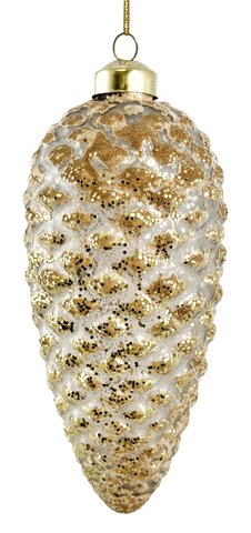 Эта игрушка выполнена вручную из высококачественного стекла и покрыта благородным оттенком старого золота с серебристым переливом. Строгая форма и изысканная цветовая гамма придают изделию особый шик и подчеркнут элегантность любой елки.