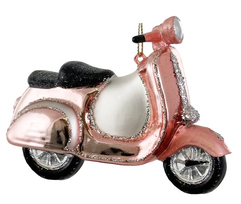 **Игрушка на ёлку Скутер 12 см (артикул №69943)** — изящная стеклянная игрушка, выполненная в форме яркого скутера, станет отличным украшением новогодней ёлки.
