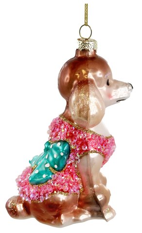 Эта очаровательная игрушка станет прекрасным украшением вашей новогодней ёлки! Стеклянная фигурка собачки в милом розовом жилетке выглядит нежно и трогательно. Её изящный дизайн идеально впишется в любой интерьер, создавая атмосферу праздника и тепла.