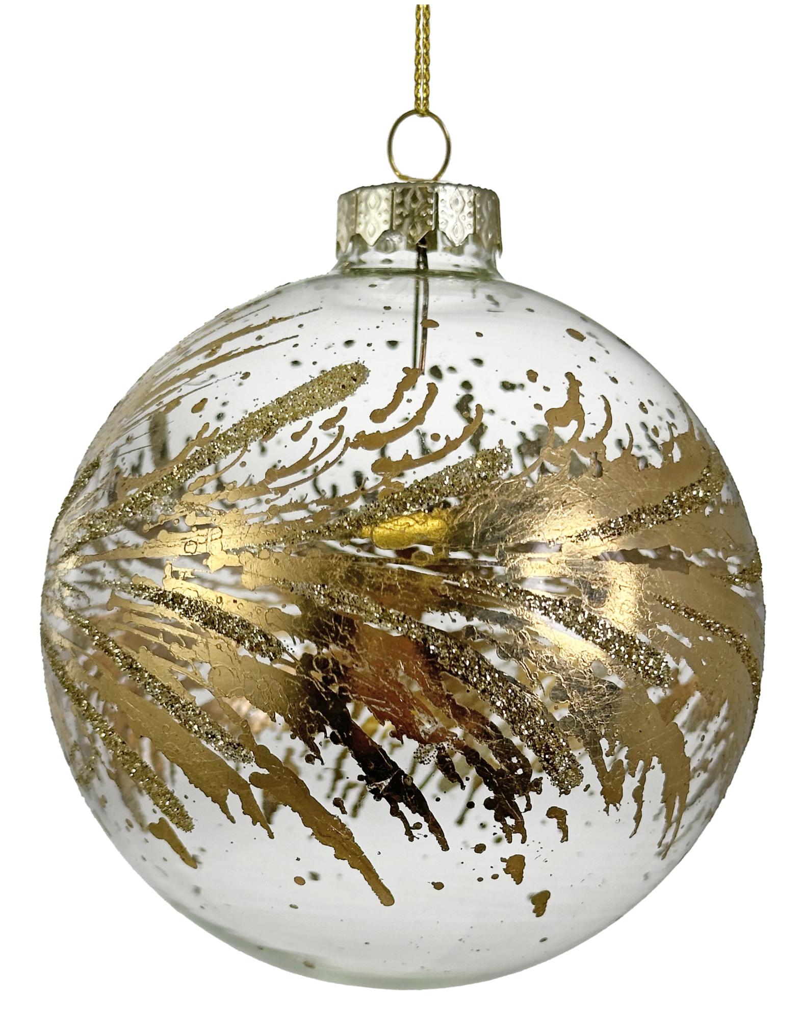 Ищете стильное и качественное украшение для вашей новогодней елки? Тогда обратите внимание на этот стеклянный шар размером 10 см в диаметре. Он обладает прозрачным цветом с красивым золотым рисунком, что придает ему особый блеск и элегантность. Такой шар станет отличным дополнением к вашему праздничному декору и поможет создать атмосферу волшебства и уюта.