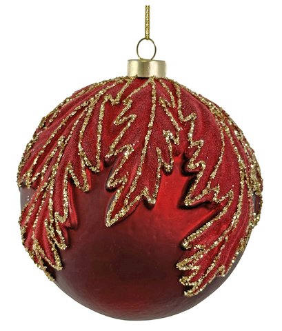 Этот праздничный шар станет прекрасным украшением вашей новогодней ёлки! Изготовленный из качественного стекла, он отличается ярким красным цветом и бархатистым покрытием, создающим ощущение мягкости и нежности. Поверхность шара украшена декоративными элементами, имитирующими бархатные листочки, придающими изделию особую изысканность и шарм.