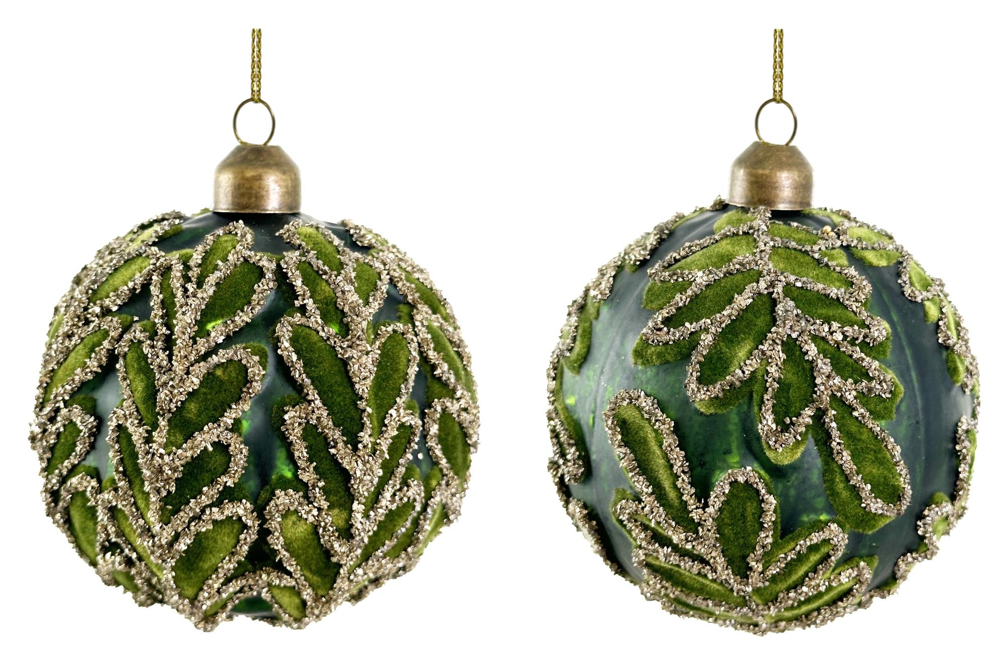 Стильный стеклянный шар диаметром 8 см покрыт нежнейшими бархатными листочками глубокого зелёного оттенка — символа природы и свежести. Эффект дополнен тонкими серебристыми блестками, придающими изделию изысканный блеск и лёгкий шарм.