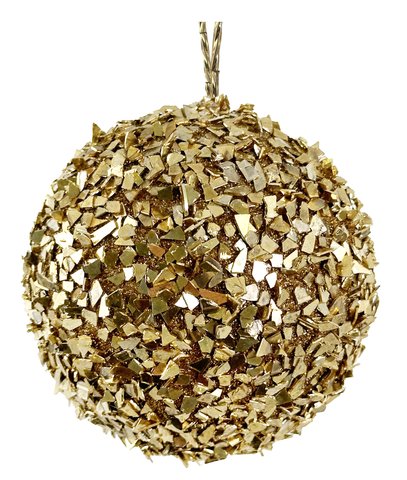 Шар украшен эффектным узором «золотые хлопья». Такое оформление идеально подчеркнёт красоту вашего интерьера и создаст неповторимую атмосферу зимнего торжества.