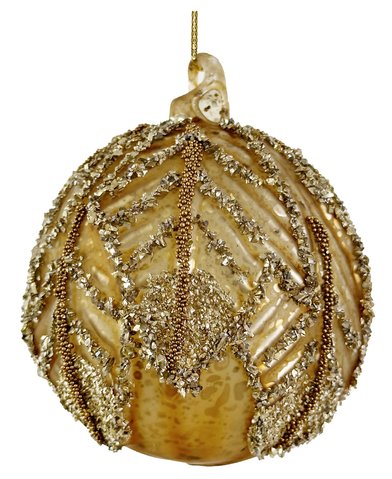 Этот стеклянный шар станет изысканным украшением вашей новогодней ёлки! Нежное золотое покрытие придаёт изделию роскошь и благородство, создавая атмосферу тепла и праздника. Идеально подойдёт для интерьеров, оформленных в стиле ретро, винтажа или классики. Его элегантность подчеркнёт торжественность момента и подарит праздничную атмосферу вашему дому.