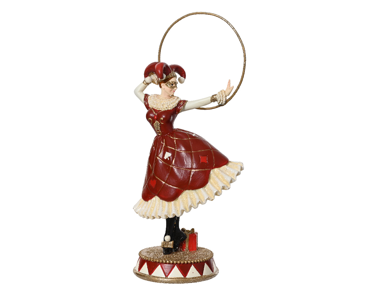 Коломбина — персонаж итальянской комедии дель арте, воплощающий грациозность и лёгкость. Фигурка выполнена с вниманием к деталям, подчёркивая выразительность образа и артистичность персонажа.