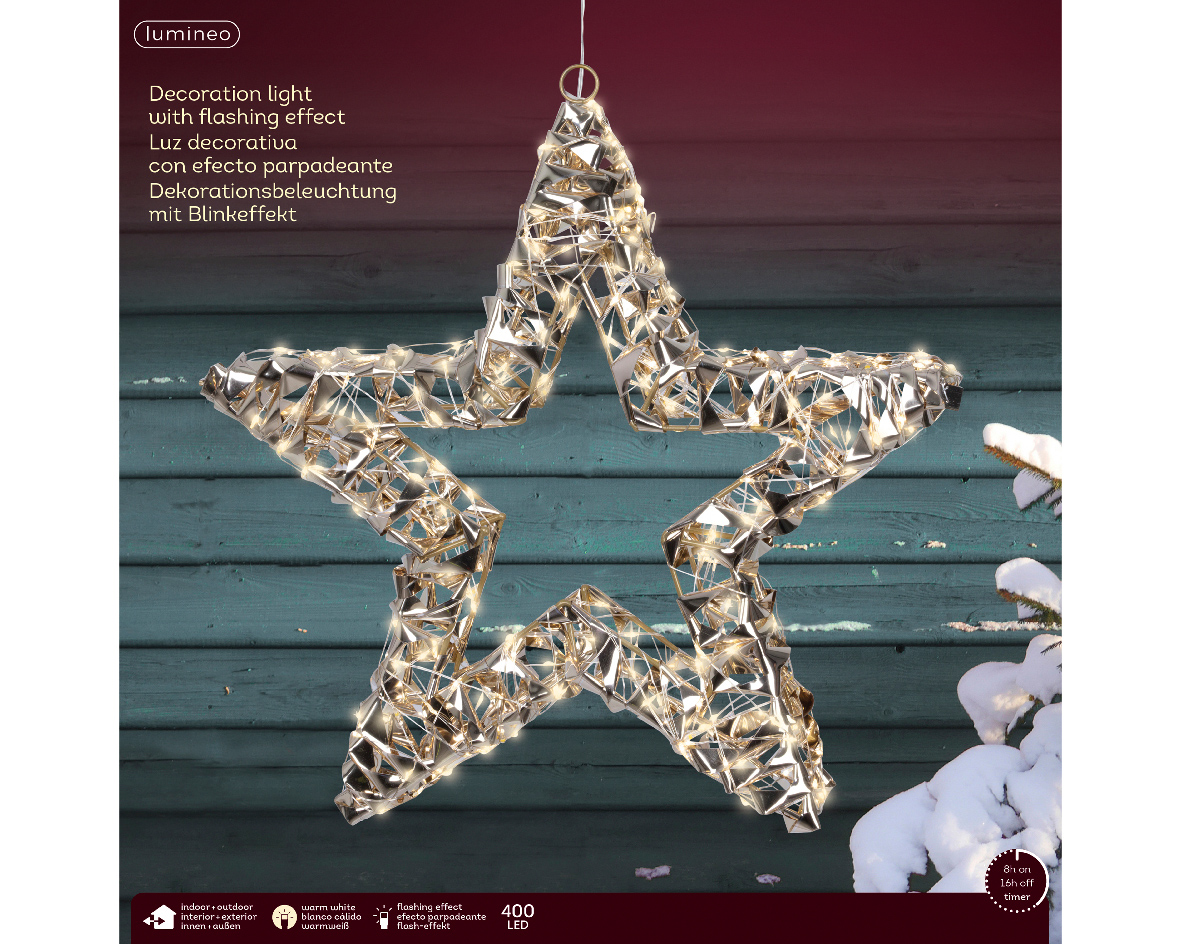 - **Эффект мерцания**: 400 теплых белых LED-светильников создают мягкое переливающееся свечение, идеально подходящее для новогодних торжеств и романтического настроения.