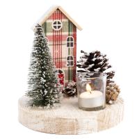 Подсвечник выполнен в форме милого зимнего домика высотой 19 см. Деревянная основа создает ощущение стабильности и надежности, а стеклянный купол защищает свечу от ветра и позволяет ей гореть ярче и дольше. Благодаря такому сочетанию материалов, подсвечник выглядит очень стильно и современно.