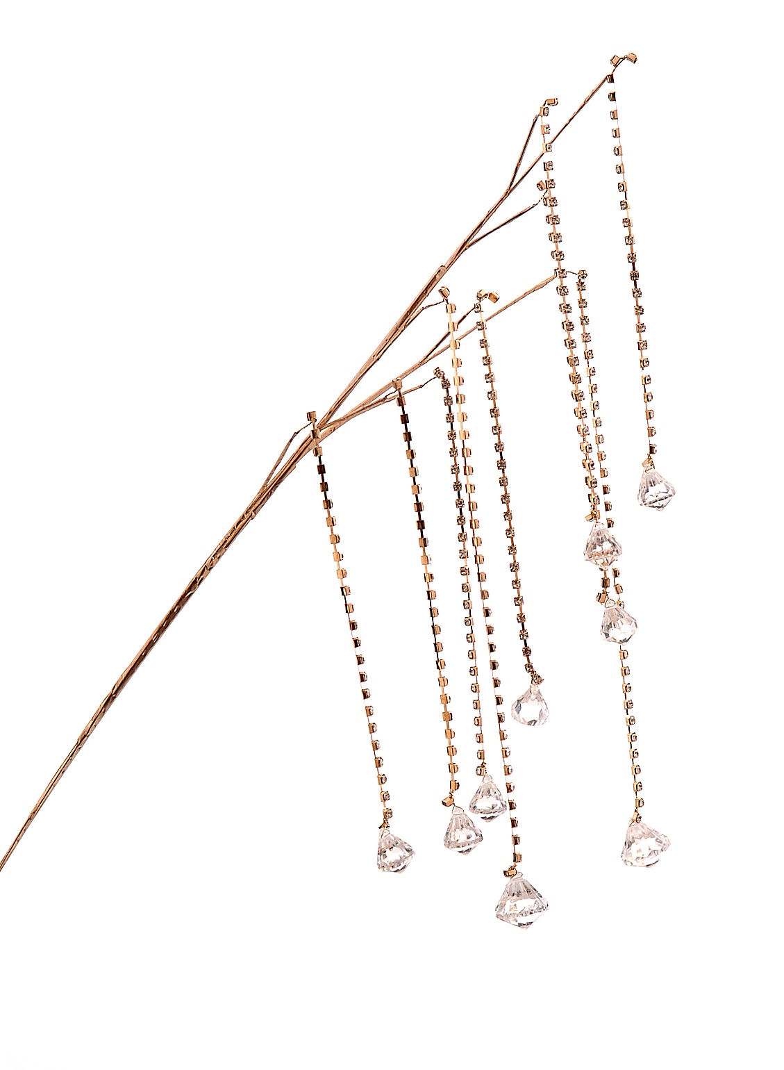 Элегантная ветка длиной 66 сантиметров станет прекрасным украшением интерьера вашего дома или праздничной композиции. Она выполнена в благородном золотистом оттенке и украшена сверкающими стразами и прозрачными кристаллами, создающими роскошный эффект мерцания света.