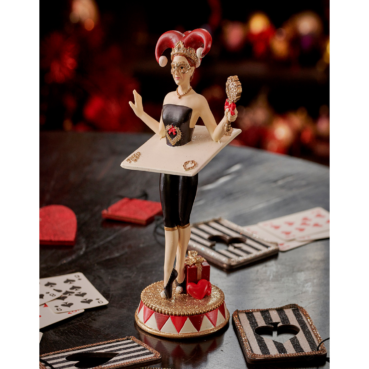 Изящный аксессуар для интерьера — статуэтка «Карточная леди». Эта оригинальная фигурка станет стильным украшением любого пространства благодаря своему необычному дизайну и утончённому исполнению.